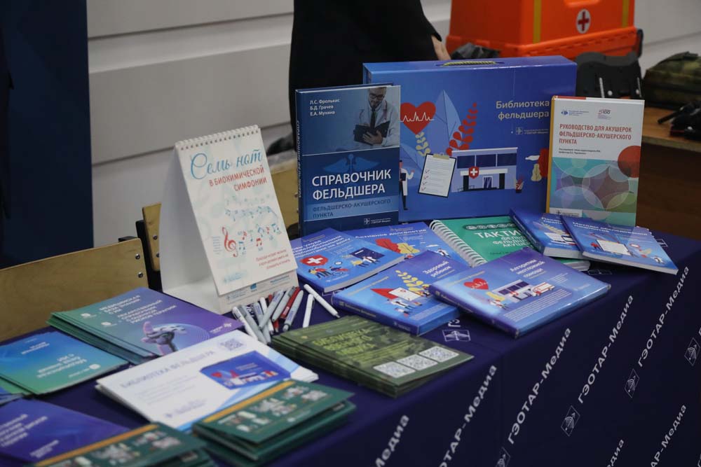 Открытие Всероссийской научно-практической конференции «Актуальные вопросы оказания медицинской помощи на территории приграничных регионов в условиях проведения специальной военной операции» предваряла выставка, на которой было представлено медицинское оборудование, необходимое для неотложной помощи, специализированная атрибутика и литература.