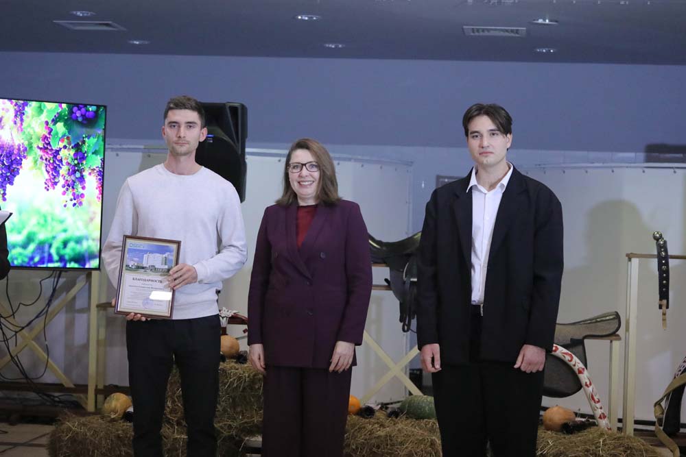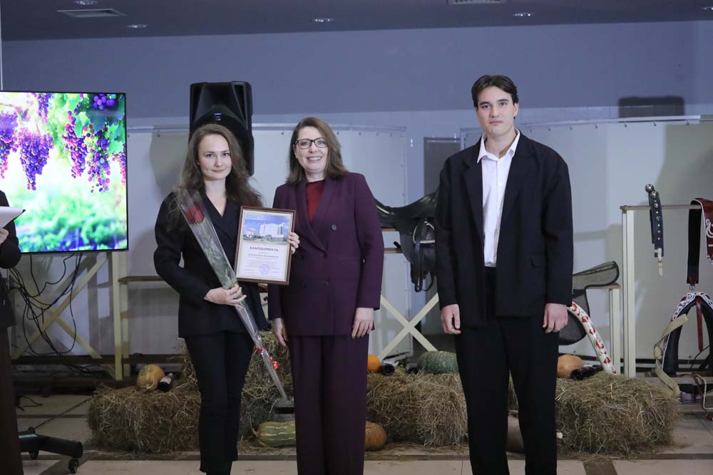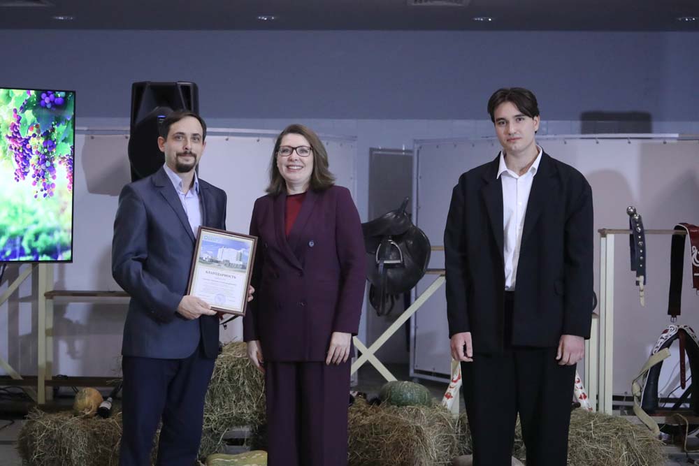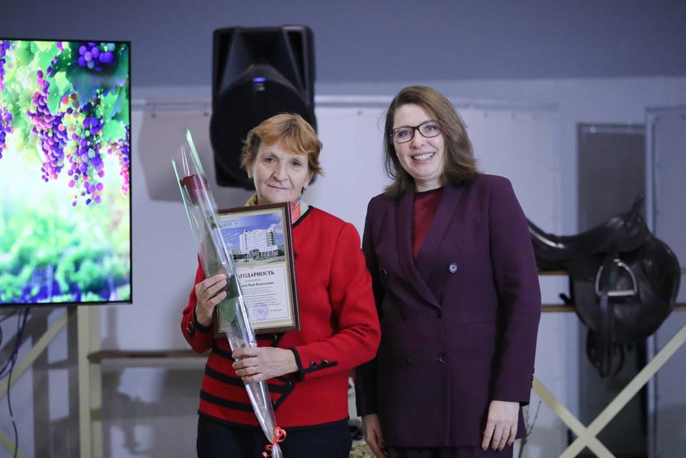 Продолжилось мероприятие приятным моментом – за большой личный вклад в успешную реализацию проекта по интродукции сортов технического винограда в Центрально-Чернозёмном районе России благодарность НИУ «БелГУ» из рук ректора получили заведующий экспериментально-биологической клиникой НИИ Фармакологии живых систем НИУ «БелГУ» Аркадий Нестеров, заведующая лабораторией биотехнологии растений НОЦ «Ботанический сад НИУ «БелГУ» Людмила Тохтарь, начальник управления ландшафтной архитектуры Марина Евтухова, главный технолог лаборатории клеточных технологий и геномного редактирования растений НИИ Фармакологии живых систем Наталия Стоянова, старший научный сотрудник Научно-исследовательского центра геномной селекции Антон Сычёв, младший научный сотрудник лаборатории доклинических исследований НИИ Фармакологии живых систем Пётр Лебедев, инженер лаборатории клеточных технологий и геномного редактирования растений НИИ Фармакологии живых систем Вера Языкова, лаборант-исследователь Лаборатории генетических технологий и генного редактирования для биомедицины и ветеринарии Алина Апостол, химик-эксперт лаборатории токсикологических исследований НИИ Фармакологии живых систем Игорь Ефременко, специалист отдела благоустройства управления ландшафтной архитектуры Станислав Апостол и мастер зелёного хозяйства Сергей Лев. Также заслуженные награды Евгения Анатольевна вручила доцентам кафедры фармакологии и клинической фармакологии медицинского института Татьяне Автиной и Юлии Степенко.