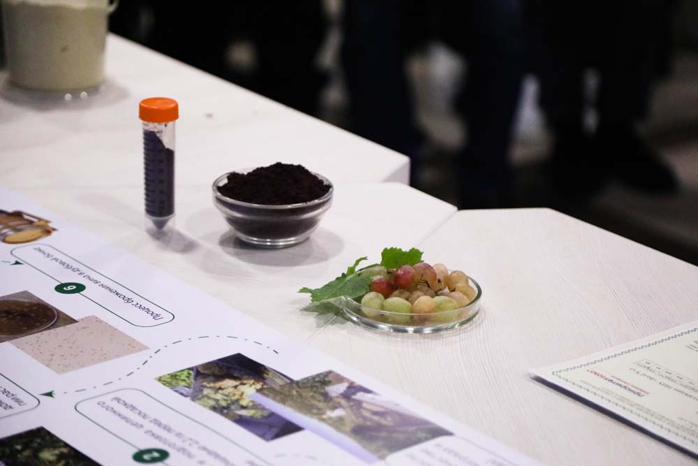 Как отметил Михаил Покровский, сорт винограда является важной, но не единственной составляющей технологии виноделия. Для него также важна совокупность природных и других факторов (почва, климат, рельеф, биомир) – терруар произрастания лозы, ключевой компонентой которого являются дрожжевые грибки. В чашках Петри на стенде были представлены чистые культуры дрожжей, выделенные в терруаре Ботанического сада под руководством директора Регионального микробиологического центра НИУ «БелГУ» Инны Соляниковой. Как отметил Михаил Владимирович, эта культура также обладает потенциалом для внедрения в промышленное производство.