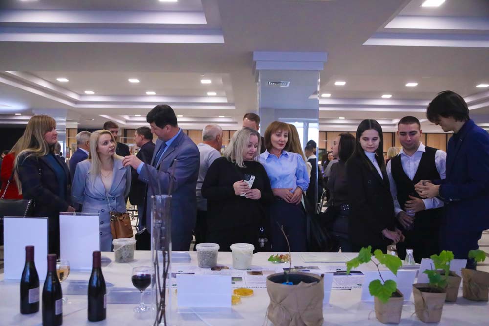 Профессор Покровский провёл для гостей импровизированную экскурсию, посвящённую результатам работы его команды, достигнутым в рамках проекта по интродукции сортов технического винограда в Центрально-Чернозёмном районе России. У стенда, посвящённого развитию ампелографии и виноградарства в Белгородской области, Людмила Тохтарь познакомила гостей мероприятия с проведённой работой по выращиванию 5000 саженцев лучших районированных сортов винограда, полученных путём микроклонального размножения. А Антон Сычёв рассказал гостям мероприятия о самой современной – микросателлитной технологии генотипирования, применённой для анализа ДНК всех растений Ботанического сада НИУ «БелГУ».