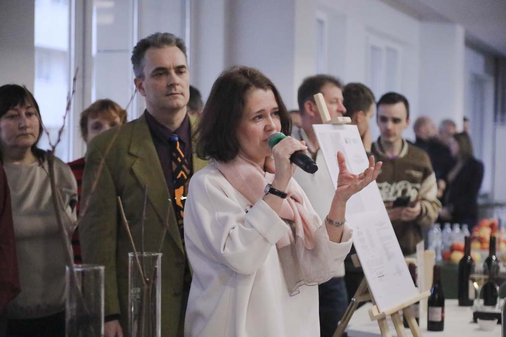 Традицию со-творческих вернисажей Белгородский госуниверситет продолжил мероприятием, которое посвятили вкладу учёных вуза в развитие региональной ампелографии. Открыли встречу ректор НИУ «БелГУ» Евгения Карловская и её дублёр, студент второго курса ИИиЦТ Дмитрий Сергеев. Евгения Анатольевна поприветствовала гостей и поздравила коллег с Днём преподавателя высшей школы.