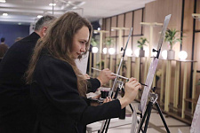 Ещё один уникальный мастер-класс дал возможность посетителям со-вернисажа попробовать свои силы в необычной технике винной гризайли – живописи, основанной на рисовании разными тонами одного цвета, но с использованием настоящего красного вина вместо краски. Никто из участников не остался равнодушным к необычной технике создания картин. Гости, среди которых были и опытные любители искусства, и начинающие рисовальщики, создали множество картин, получив возможность сохранить свои работы в качестве сувенира в память о посещённом со-вернисаже.