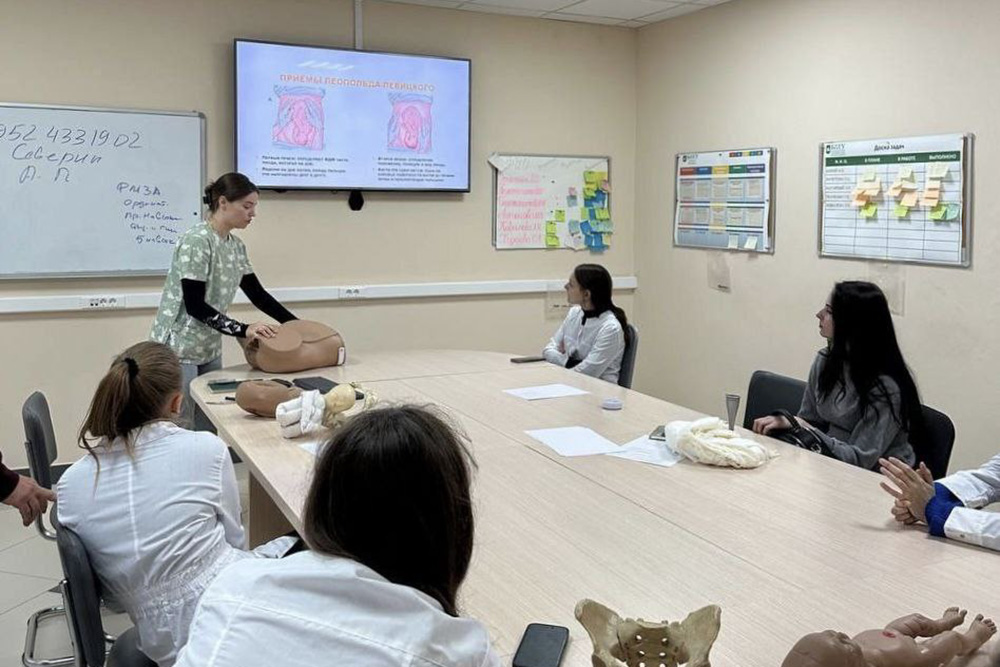Завершился цикл мероприятий мастер-классом на кафедре акушерства и гинекологии, где под руководством заведующая кафедрой Оксаны Алтуховой будущие медики смогли познакомиться с основными техниками выполнения наружного акушерского исследования, а также с анатомическими особенностями таза беременных женщин.