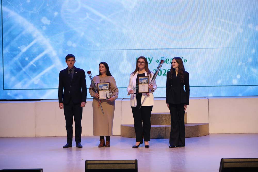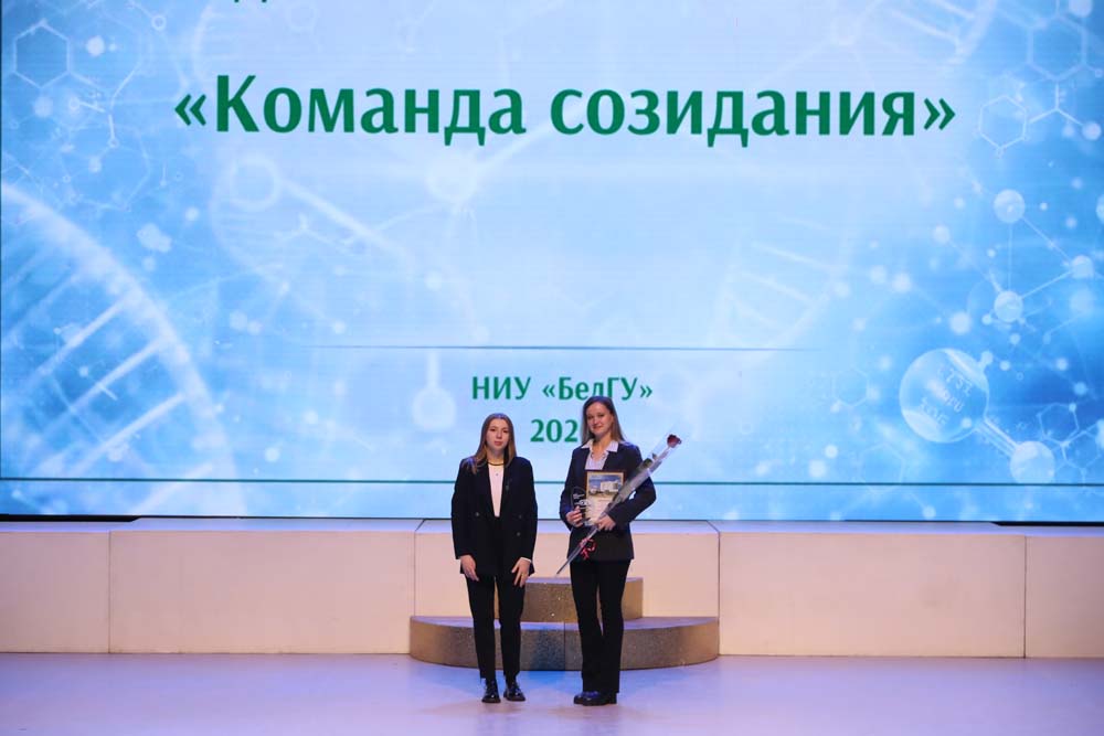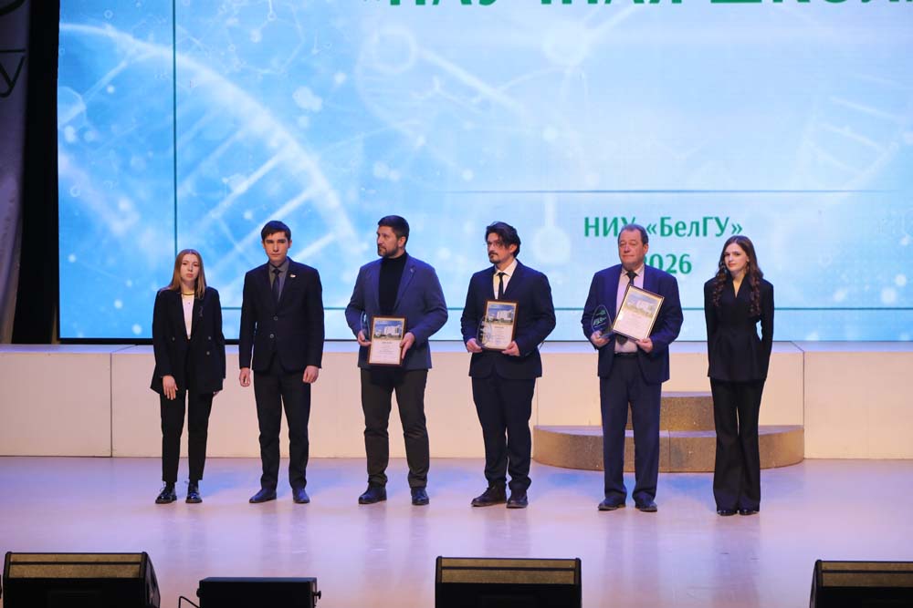 Отмечая важность преемственности поколений и совместного созидательного труда, награды выдающимся учёным вуза вручили обучающиеся в НИУ «БелГУ» обладатели стипендии Президента и Правительства РФ Елизавета Бахмудова, Максим Доронин Ангелина Моркель и Анастасия Голубь. Из рук представителей молодого поколения дипломы и памятные статуэтки в номинации «Научная школа года» получили директор НИИ Фармакологии живых систем НИУ «БелГУ» Михаил Покровский, профессор кафедры фармакологии и клинической фармакологии Михаил Корокин и аспирант и сотрудник НИИ Фармакологии живых систем Владимир Покровский, а также победители в номинации «Учёный года НИУ БелГУ» – доктор физико‑математических наук, руководитель научного направления «Инновационные технологии в материаловедении» Сергей Миронов и кандидат физико-математических наук Александр Калиненко.