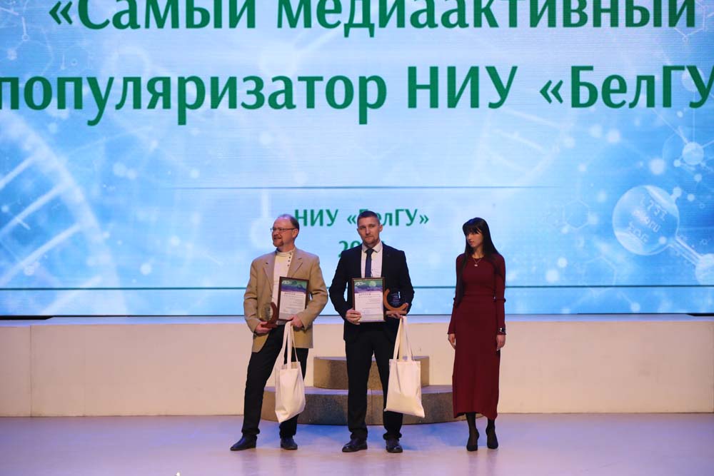 Также на церемонии объявили имена победителей номинации «Самый медиаактивный популяризатор науки в НИУ «БелГУ». Диплом III степени получил профессор Павел Голеусов, который активно популяризирует достижения вуза в области геоэкологии и мониторинга окружающей среды. Диплом II степени вручили кандидату исторических наук Сергею Прокопенко, признанному Всероссийским обществом «Знание» лучшим просветителем Белгородской области и известному активным участием в дискуссиях о фальсификации истории. Диплома I степени удостоен кандидат биологических наук Алексей Дейкин, который в прошедшем году прокомментировал и выступил экспертом в федеральных и региональных СМИ по 25 инфоповодам.