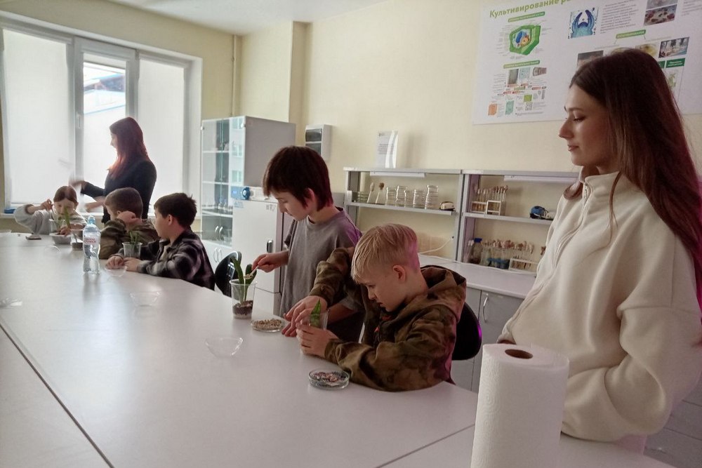 Мастер-класс по изготовлению флорариума провели лаборанты биологического учебно-научного комплекса «Инновационные решения» Софья Ахапкина, Виктория Ефимова, Анастасия Гаркавая. Школьники изучили принципы автотрофной мини-экосистемы: круговорот воды благодаря транспирации и конденсации, роль слоистой структуры для аэрации и фильтрации, а также научились подбирать растения на основе экологии вида для устойчивого симбиоза. На практике, используя предоставленные инструменты и материалы, гости создали уникальную композицию из растений, камней и декора, освоили основы ухода и забрали готовый флорариум на память.