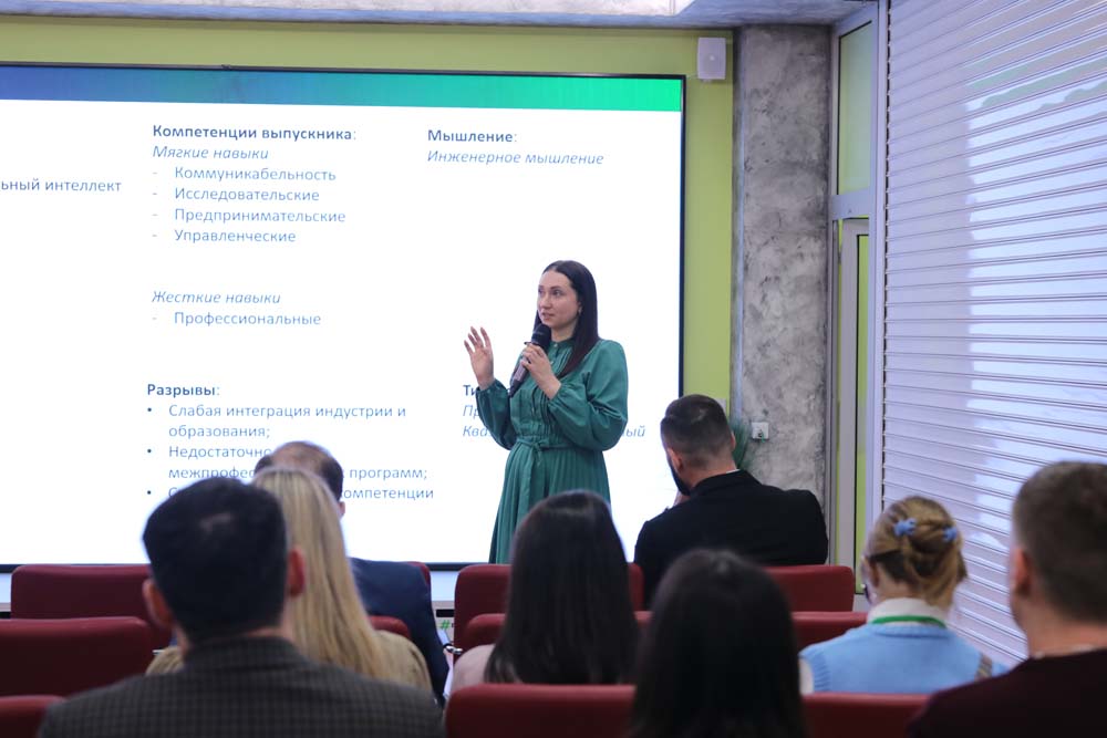Вторая группа работала в траектории «Выпускник-визионер и новая образовательная модель университета», над вопросами: кто такой выпускник-визионер, какие качества, компетенции, способы мышления и типы опыта должны стать результатом образования, какие дефициты есть в текущей образовательной модели, а также какие элементы подготовки требуют пересборки.