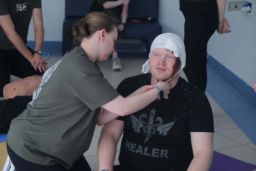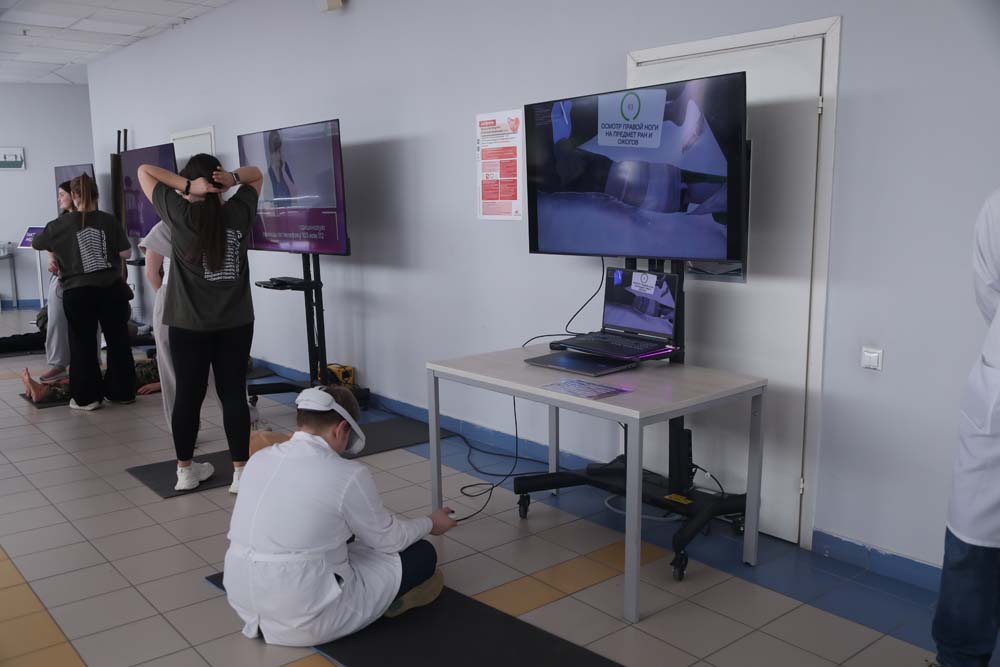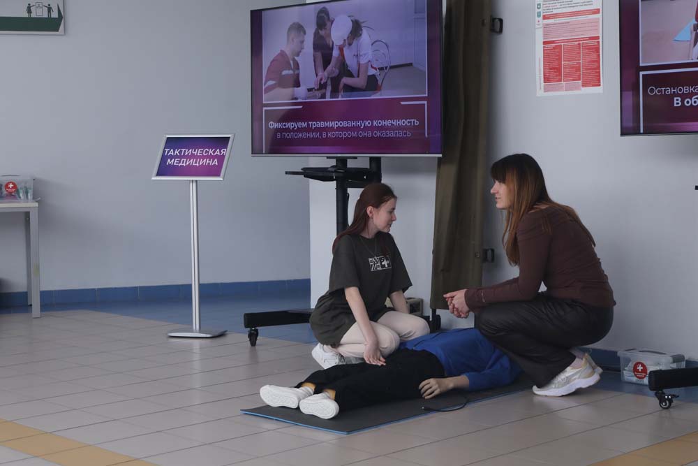 Отдельное внимание уделено VR-тактической медицине. Участники при помощи тренажёров осваивают практические навыки оказания неотложной медицинской помощи. Помогают им в этом студенты медицинского института, волонтёры-медики.